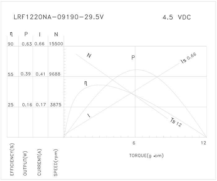 型號 MODEL | 電壓 VOLTAGE | 無負荷 NOLOAD | 最大效率點 AT MAXIMUM EFFICIENCY | 扭力STALL | ||||||